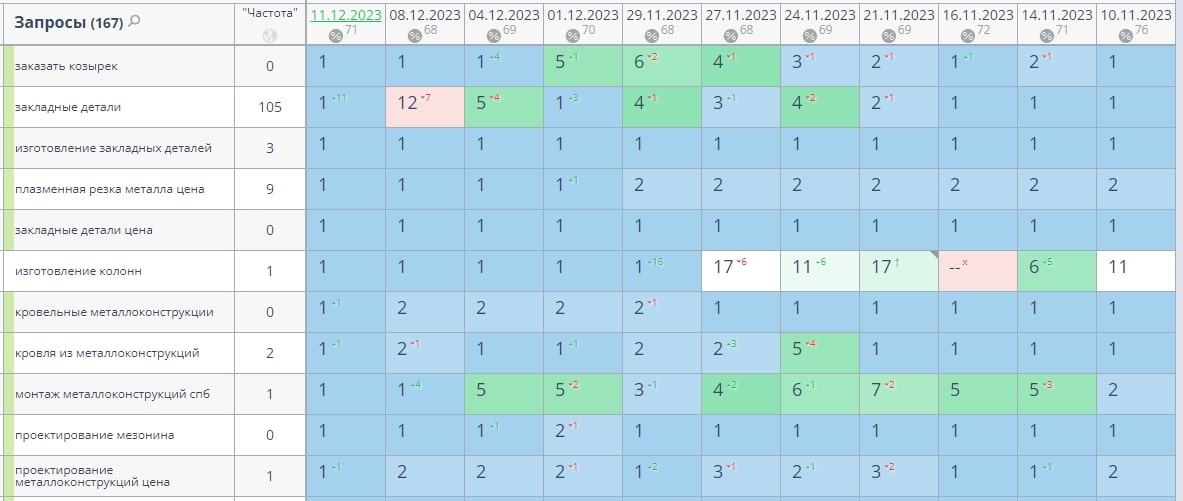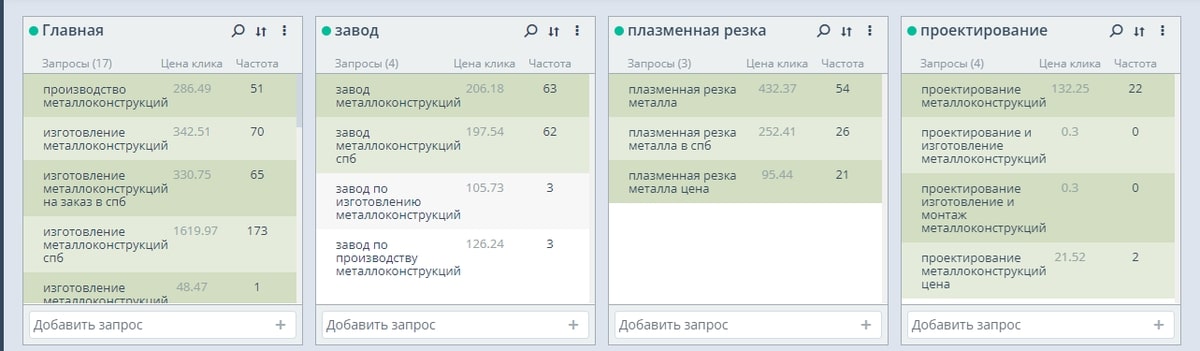 1. Сбор высокочастотных и среднечастотных запросов по теме изготовление, монтаж и проектирование металлоконструкций