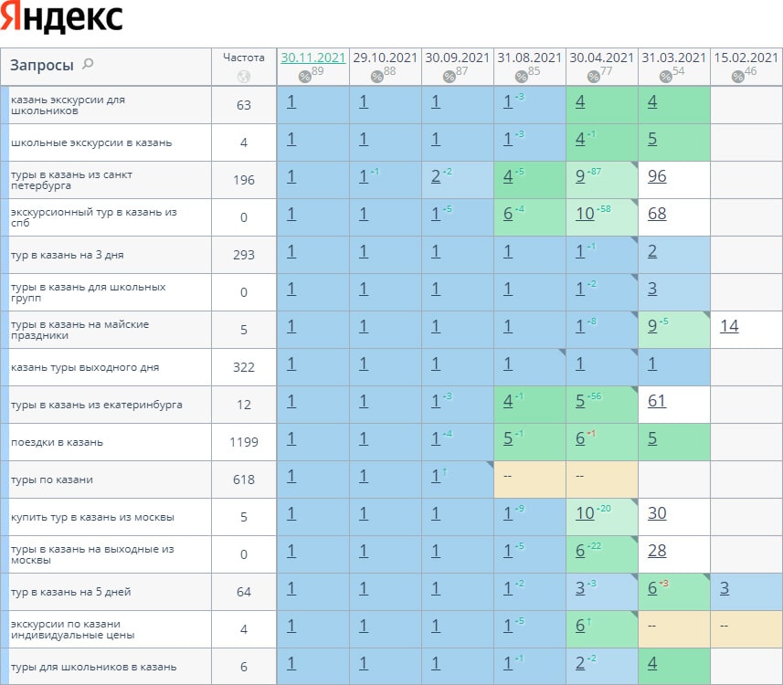 За время работы нам удалось поднять позиции до 63% в ТОП-3. Трафик увеличился на 21%, а количество заявок почти в 1.5 раз. И так будет с каждым проектом!