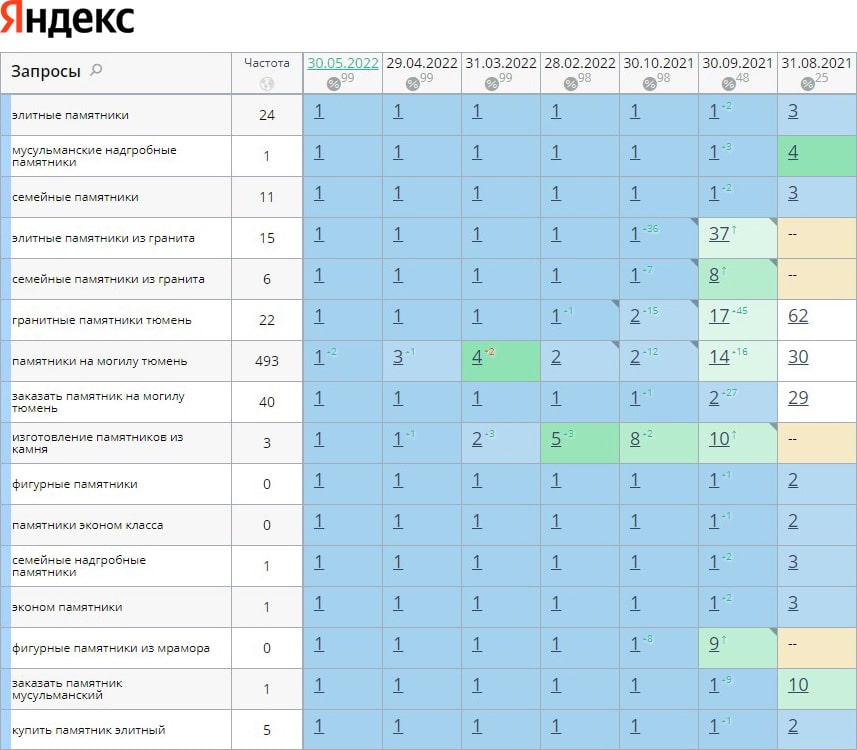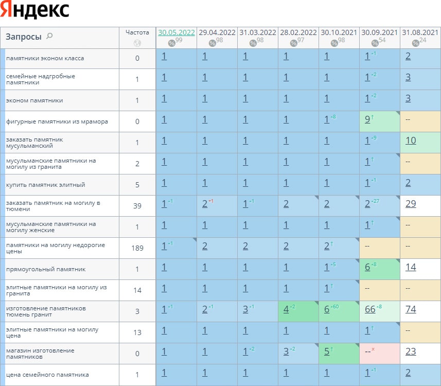 За время работы нам удалось поднять позиции с 3% до 80% в ТОП-10, с 0% до 65% в ТОП-3. И так будет с каждым проектом!
